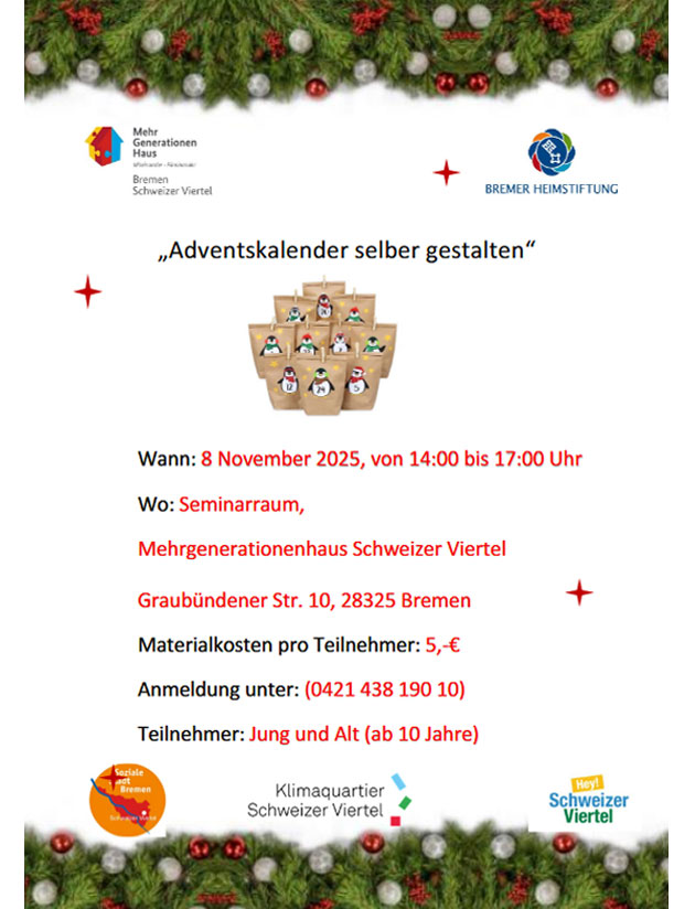 Wo: Seminarraum, des Mehrgenerationenhaus Schweizer Viertel, Graubündener Str. 10, 28325 Bremen