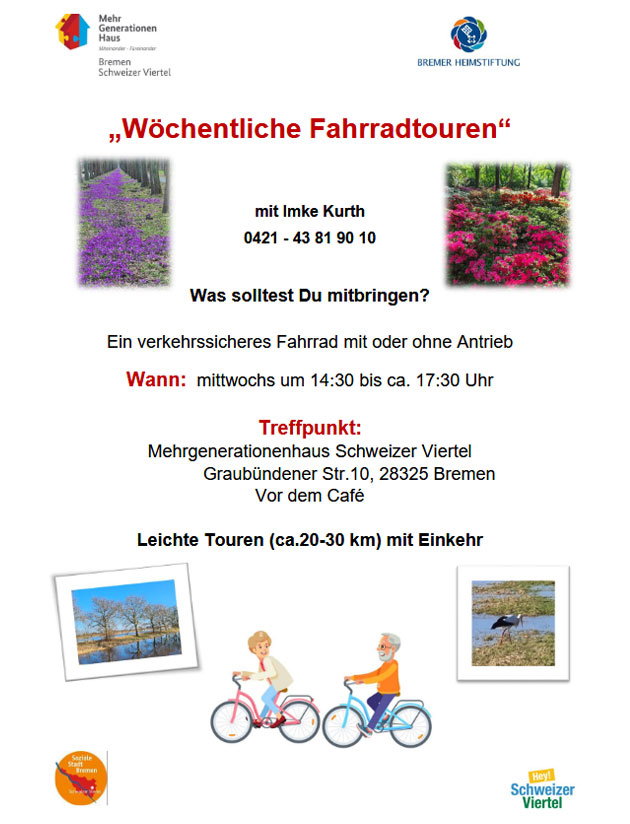 Wo: Mehrgenerationenhaus Schweizer Viertel, Graubündener Str.10, 28325 Bremen, Vor dem Café