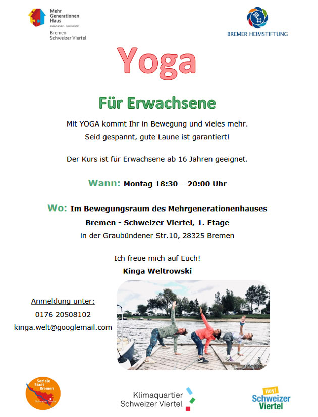 Wo: Im Bewegungsraum des Mehrgenerationenhaus Schweizer Viertel, Graubündener Str. 10, 28325 Bremen